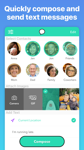 Uma das funcionalidades destacadas é a capacidade de enviar GIFs engraçados diretamente do aplicativo, enriquecendo a comunicação. Além disso, a extensão de compartilhamento permite que o Group Text+ seja utilizado em outros aplicativos, tornando o envio de mensagens ainda mais prático. Com apenas alguns toques, é possível compor e enviar mensagens, tornando a experiência de comunicação mais ágil e agradável.